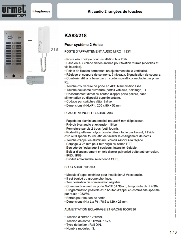• Alimente jusqu’à 128 postes d’appartement.